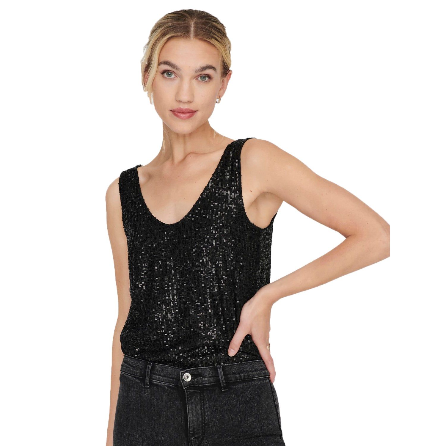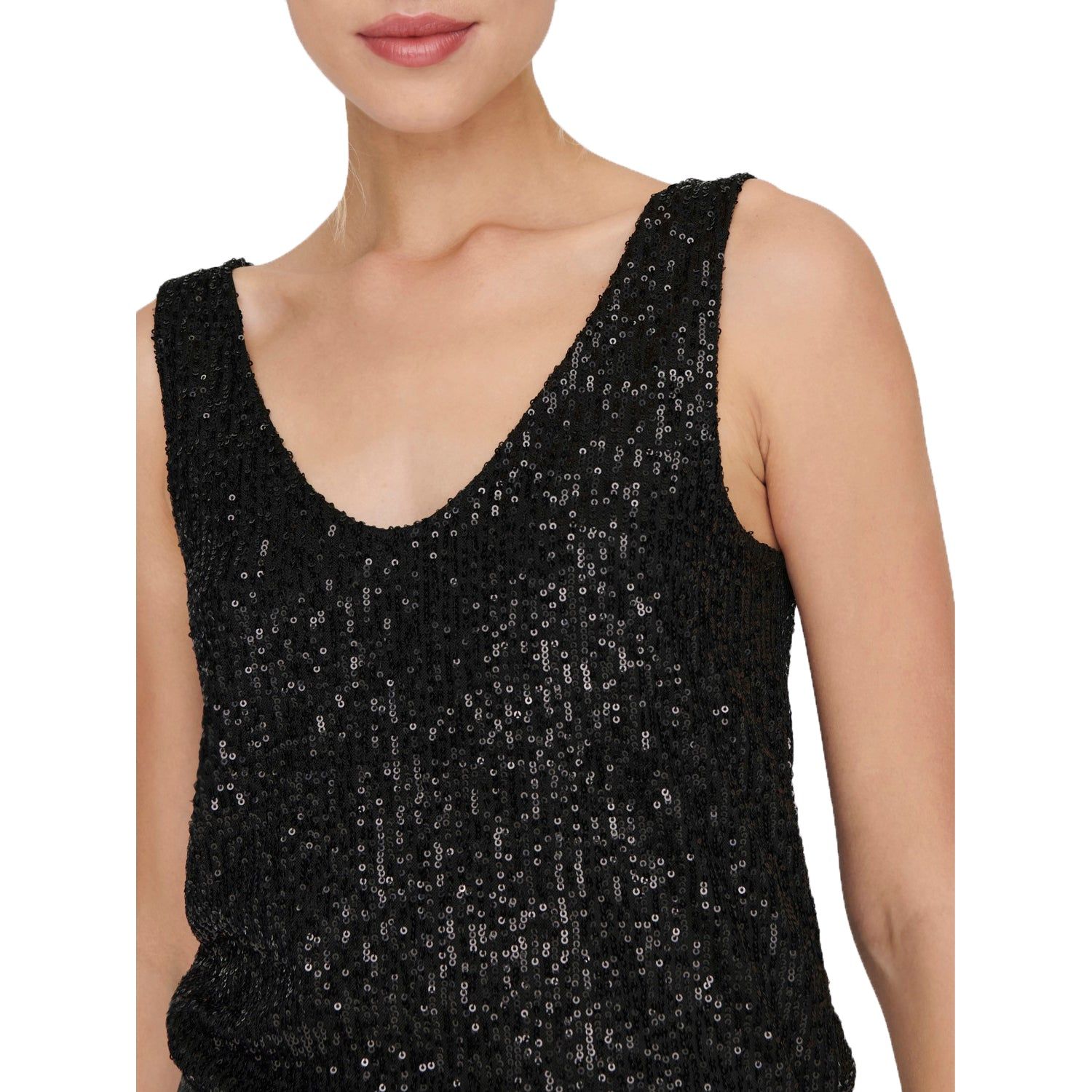 Brilla tutto il tempo indossando la Canotta Donna Ana Sequins firmata Only. Realizzata internamente con un tessuto morbido a contatto con la pelle, questa Canotta Donna Only si differenzia dalle altre poichè tempestata di paillette luminosissime. Caratterizzata da un romantico scollo a V e dalle spalle scoperte, è l'indumento giusto per rendere super sparkly ogni tuo look.