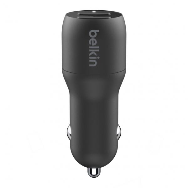Caricabatterie doppio Belkin BoostCharge – alimentatore da auto – 24 watt – 4,8 A – 2 porte di uscita (USB) – sul cavo: Lightning – nero