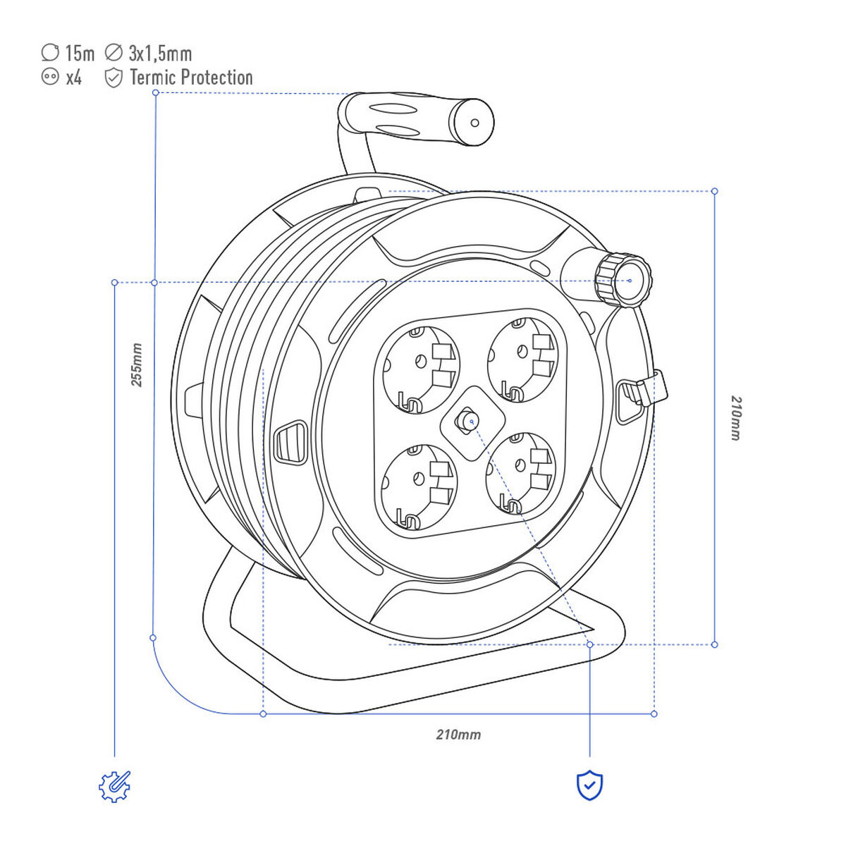 - Lunghezza del cavo: 15 m