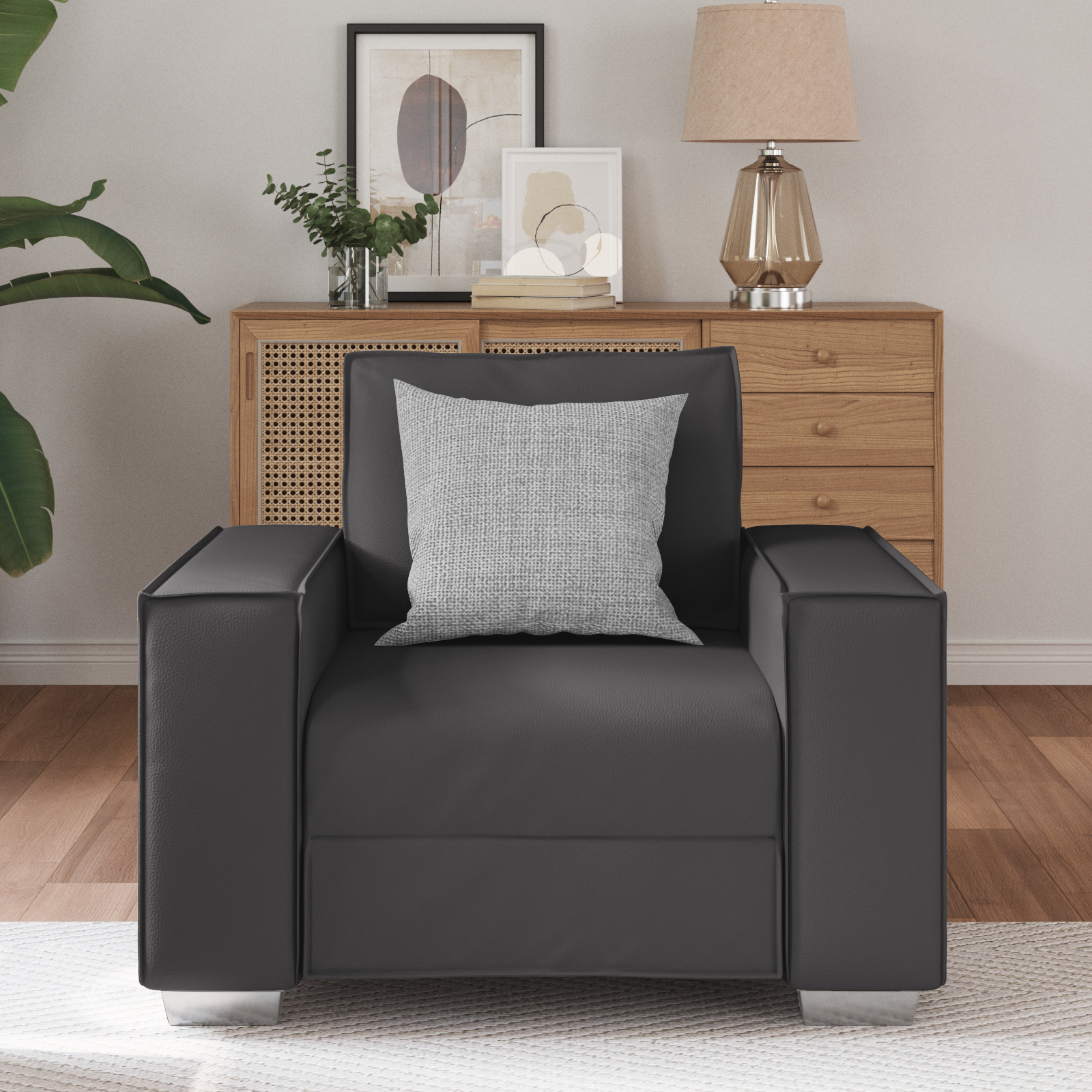 - Componenti Inclusi: Con braccioli larghi e schienale imbottito in poliestere, offre comfort e durevolezza. L’imbottitura in schiuma e fibra garantisce un’eccezionale comodità, per un relax totale.