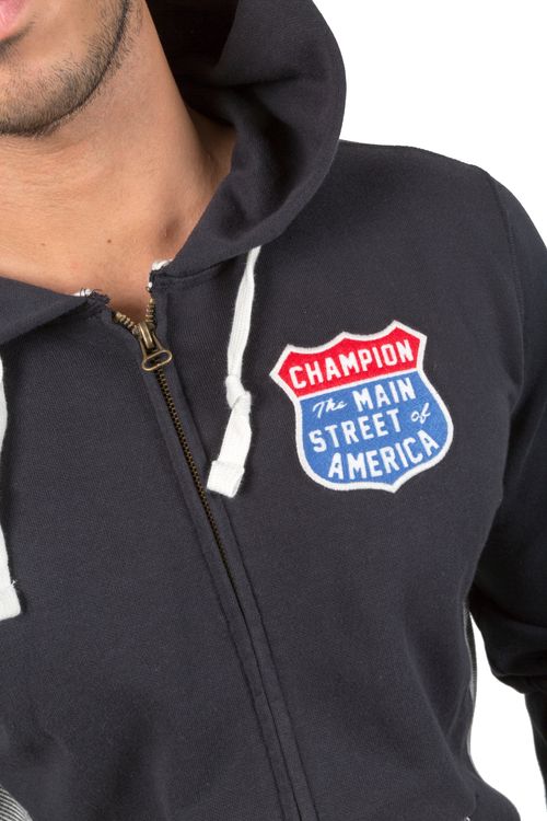 La Felpa Full Zip Cappuccio Route 66 fa parte della collezione Primavera Estate 2017 di Champion. La Full Zip Cappuccio Rooute 66 è una felpa sportiva, ideale per la palestra, grazie anche alle due tasche frontali aperte. La Felpa Route 66 offre un look particolare, oltre che l'apertura frontale completa tramite zip ed il cappuccio regolabile.
