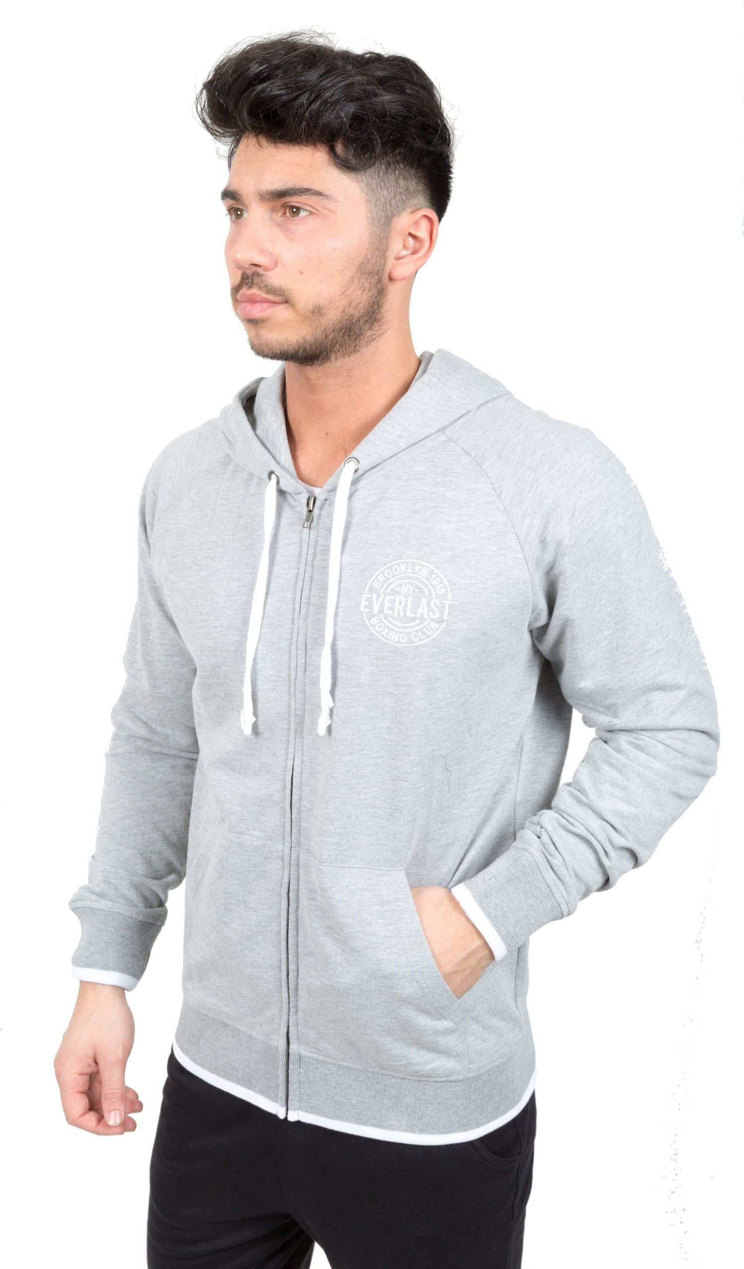 La Felpa Uomo Full Zip Con Cappuccio appartiene alla nuovissima collezione primavera estate 2016 di Everlast . Realizzata in cotone, la felpa di Evelast è molto comoda e dotadi di cappuccio regolabile con coulisse e tasche laterali. Indossa la felpa Full Zip Con Cappuccio di Everlast durante gli allenamenti in palestra o per stare comodi nel tempo libero. Disponibile nel colore grigio.
