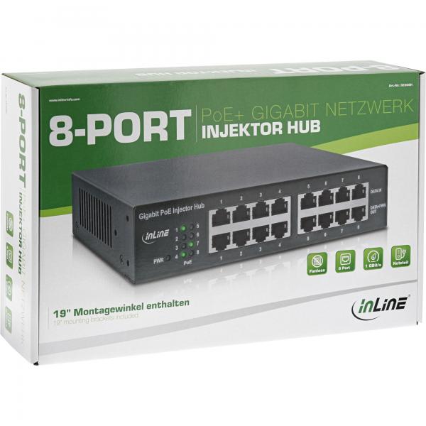1x InLine® PoE+ Gigabit network injector hub 8 port
