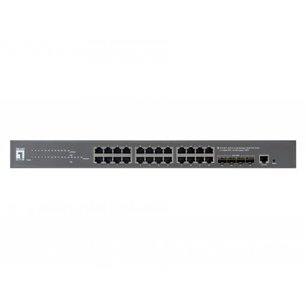 LevelOne GTP-2871 – Switch – L3 Lite – gestito – 24 x 10/100/1000 (PoE+) + 4 x 10 Gigabit SFP+ – Desktop, montabile in rack – PoE+ (400 W)