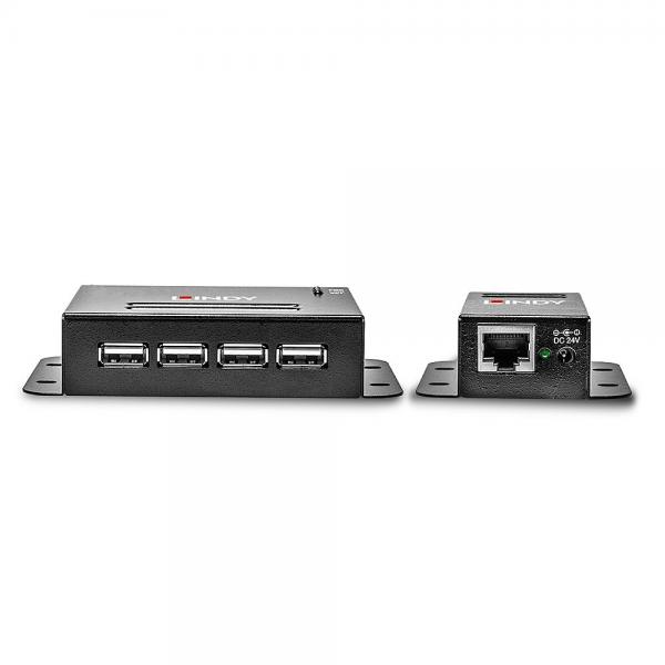 Questo Extender USB 2.0 Cat.6 trasferisce il segnale da un computer a quattro periferiche USB fino a 50m di distanza tramite un singolo cavo di rete Cat.5e/6 o superiore. Per ottenere massime prestazioni e compatibilità, consigliamo l’uso di cavi patch solid core.