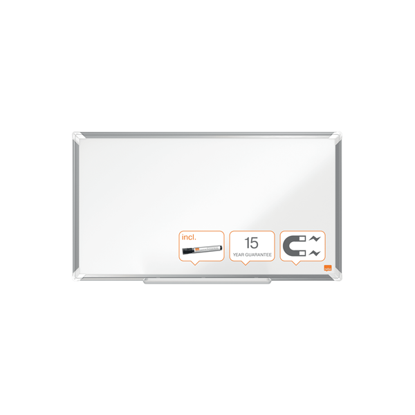 Lavagna bianca magnetica formato Widescreen laccata con una moderna ed elegante cornice in alluminio. Dotata di sistema di montaggio angolare e di un’ampia vaschetta porta accessori per depositare pennarelli e cancellini. La superficie della lavagna magnetica laccata offre una cancellabilità migliorata per un uso moderato. Caratteristiche- La superficie della lavagna magnetica laccata offre una cancellabilità migliorata per un uso moderato- Moderna ed elegante cornice in alluminio- Sistema di montaggio angolare- Ampia vaschetta porta accessori per depositare pennarelli e cancellini- Fornita con un pennarello per lavagna Nobo- Superficie garantita 15 anni
