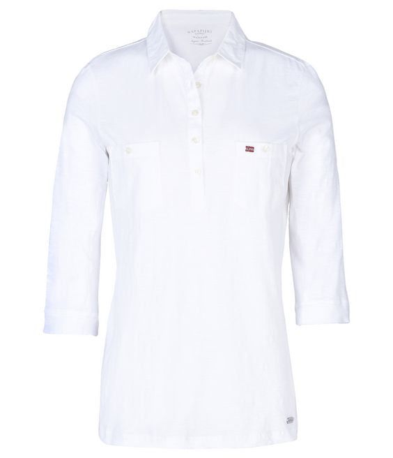La Polo Donna Emy completa la collezione Napapijri primavera estate 2017. La polo Napapijri Emy presenta una vestibilità regular, maniche a 3/4 ed è realizzata in tessuto jersey. Nelle prime giornate primaverili sfoggia la polo Emy per un look fresco e moderno.