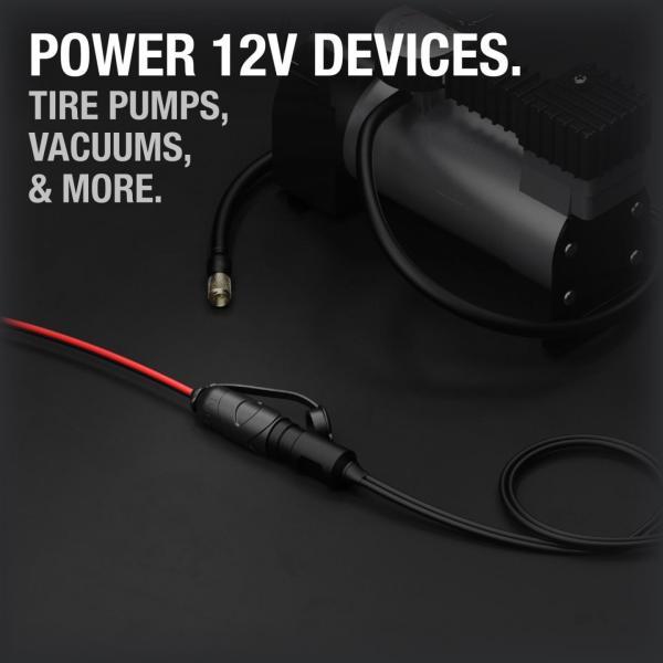 Accessorio che consente di collegarsi direttamente alla batteria del veicolo per alimentare dispositivi 12 V come ad esempio compressori per pneumatici, aspirapolveri, macchine da caffè, ventilatori, termoventilatori e molto altro ancora. Provvisto di fusibile incorporato da 20A per la massima sicurezza e di tappo copri presa 12V per proteggerla dagli agenti atmosferici. Cavo realizzato interamente in rame da 16 AWG ad alta conduttività con capacità nominale di 15 A. Lunghezza cavo: 47 cm.