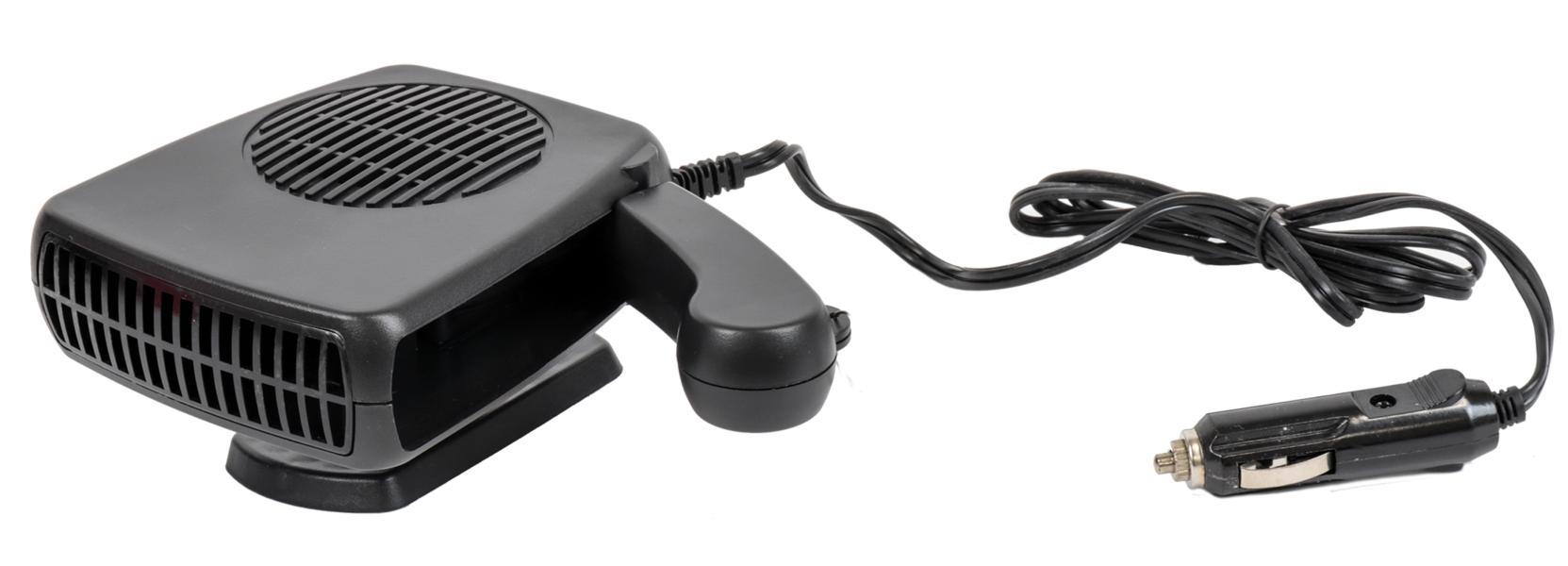 Riscaldatore/ventilatore ceramico 12V 150W. Provvisto di manico e base rotante di 360 gradi. Con interruttore freddo/caldo. Lunghezza cavo: 1,5 m.
