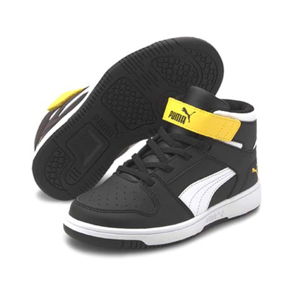 Le Scarpe Bambino Rebound Layup SL sono state pensate da Puma per i più piccini. Dallo stile vintage ispirato ai campi da basket, le Scarpe Rebound Layup SL risultano perfette sia da usare in allenamento che durante la vita di tutti i giorni. Principalmente in tinta nera, presentano dettagli gialli e bianchi che vanno a rendere unico lo stile di queste Scarpe Bambino Puma. La chiusura con strappo permette di avere maggiore sicurezza sia in città che durante il gioco.