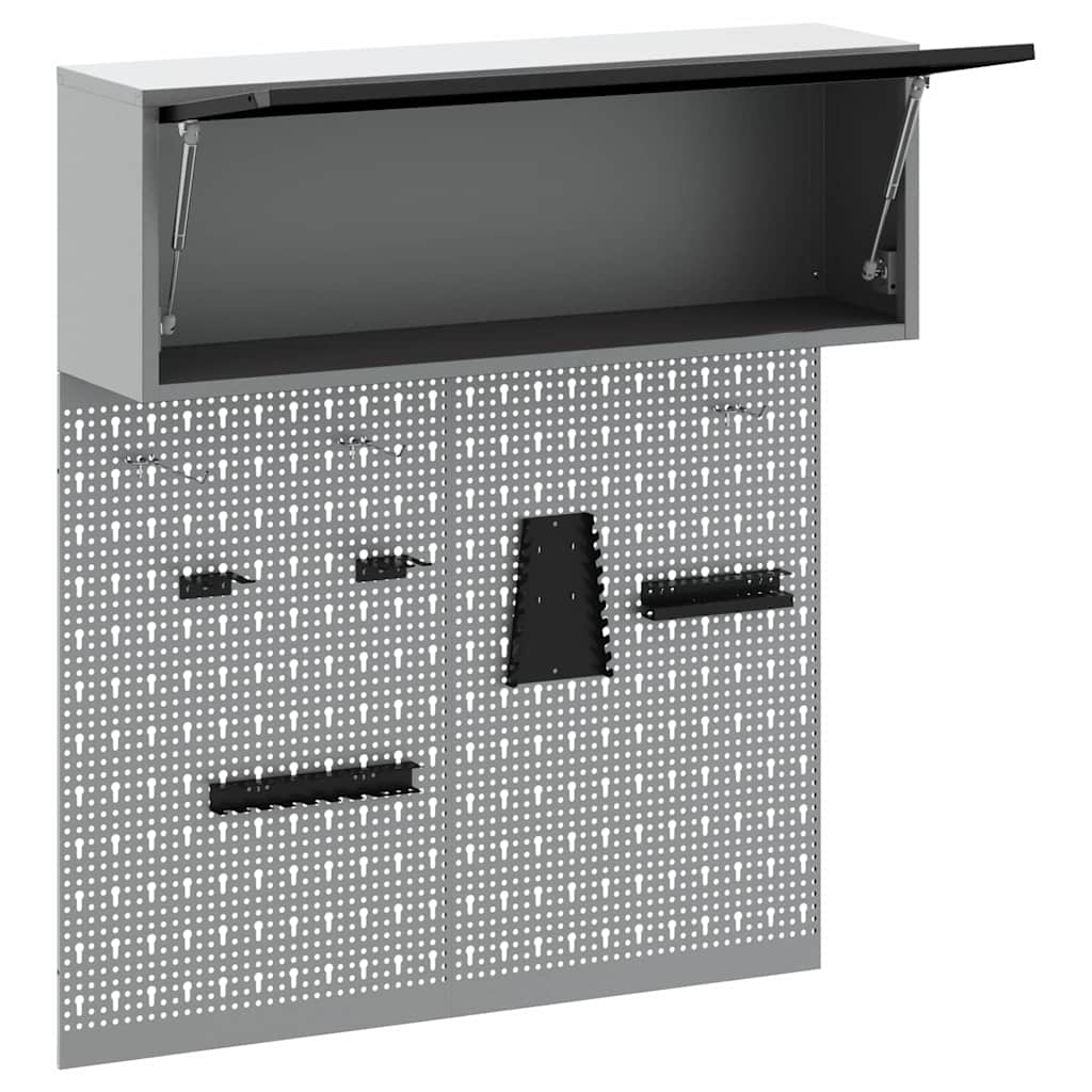 Questo set di armadi da parete e tavole forate è fondamentale per tenere in ordine la tua officina o garage. Con un look industriale moderno, fatto di acciaio verniciato a polvere e in una bella finitura grigia, è progettato per interni. Ti offre una soluzione sicura per riporre gli attrezzi in modo ordinato e accessibile, mentre la tavola forata ti aiuta a tenere tutto a portata di mano e ben organizzato.