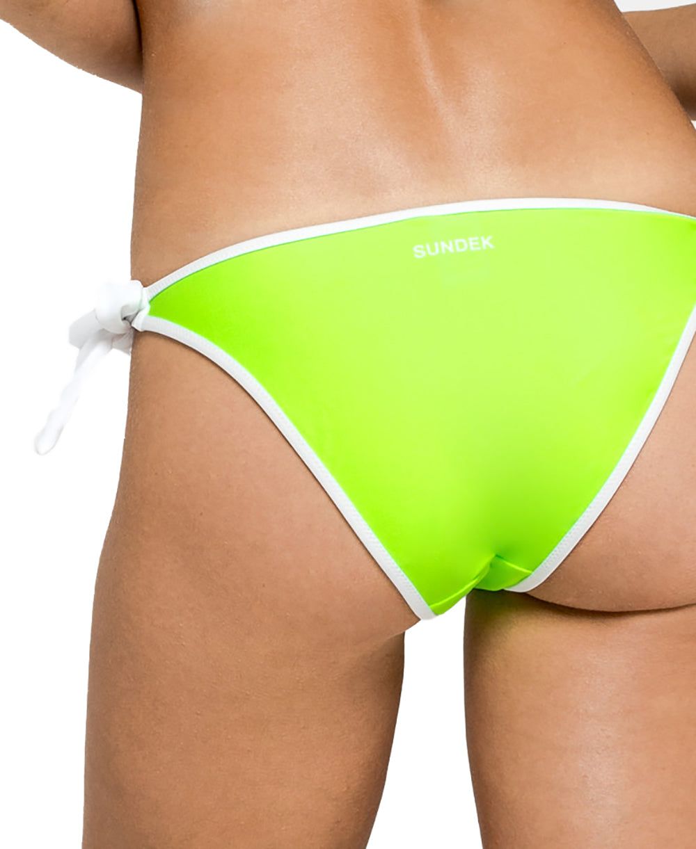 Sii la regina della spiaggia grazie allo slip mare donna Tara, che Sundek propone nella collezione primavera estate 2019. La mutanda mare Sundek Hisa è regolabile tramite fiocchi laterali, e presenta il logo centralmente sul retro. Il top viene venduto separatamente.