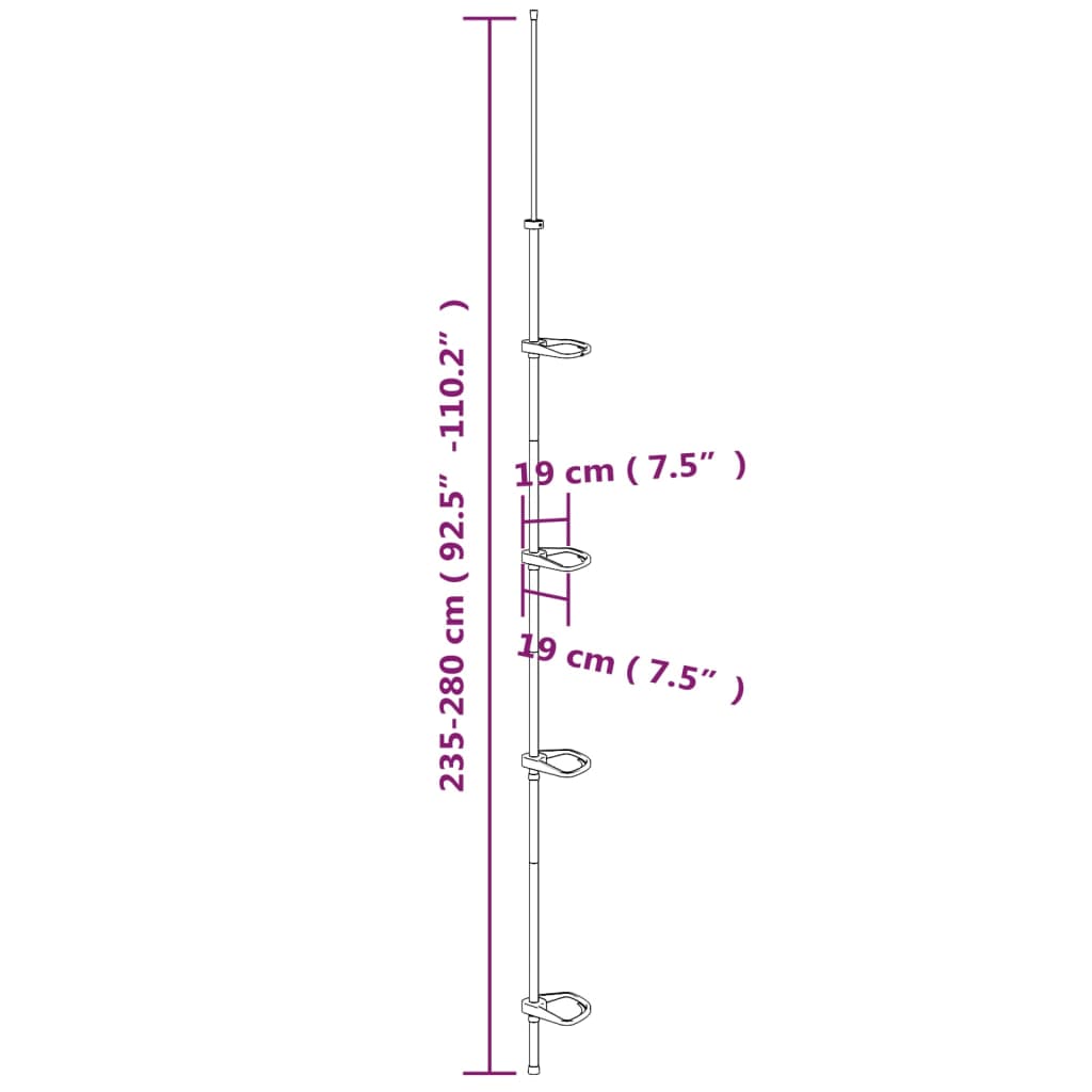 - Dimensioni: 19 x 19 x (235-280) cm (L x P x A)