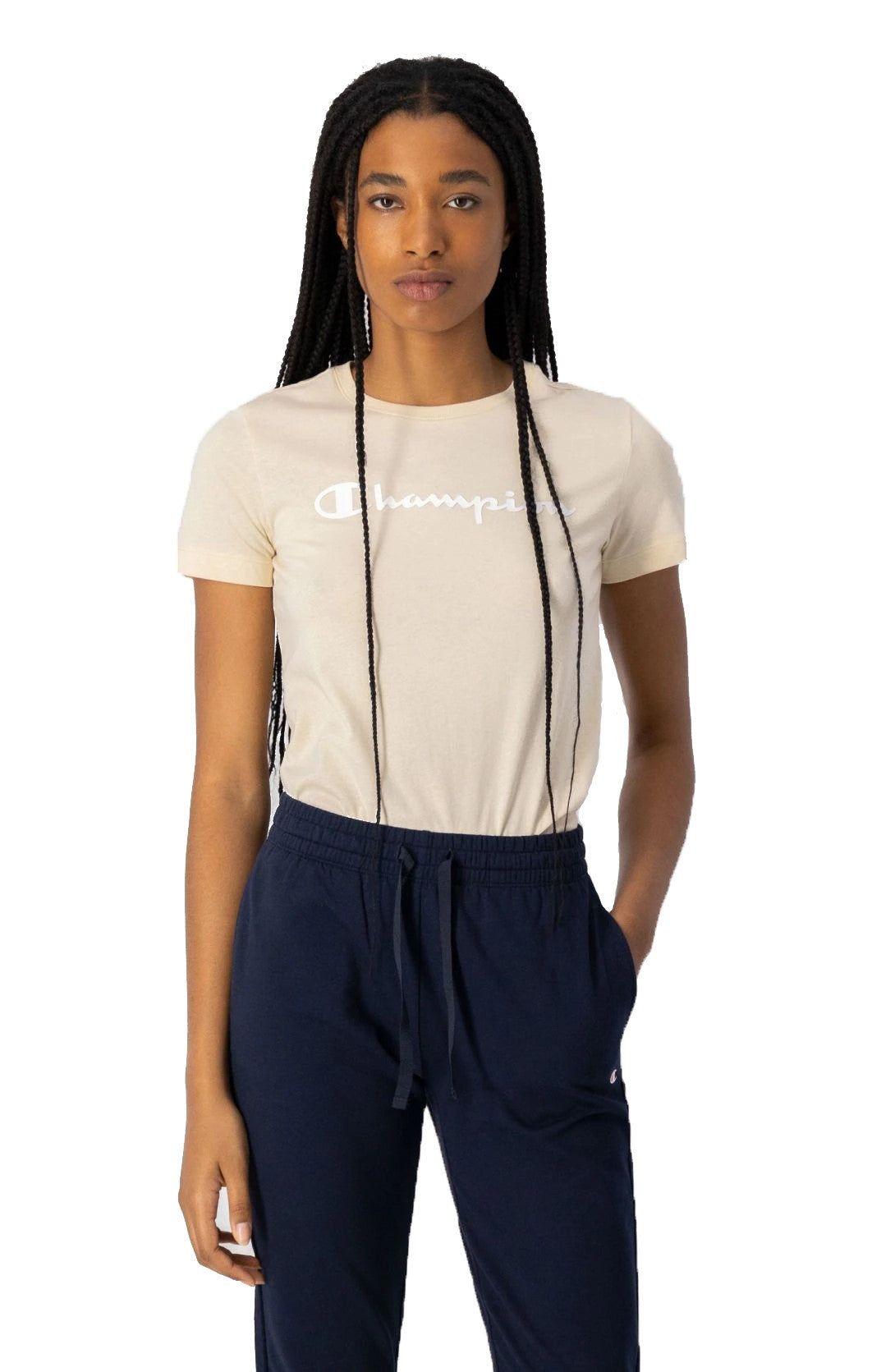 La T-Shirt Donna Stampa Logo è la novità per Champion. Per il capostipite della quintessenza dell’essenziale non è necessario cercare a lungo, perchè l'hai appena trovato in questa T-Shirt Champion Stampa Logo. Un modello basic realizzato in morbido cotone leggero, così da poterla indossare a lungo senza subire disagi, dotato di girocollo e completato dall’iconico logo a contrasto Champion esteso sul petto.