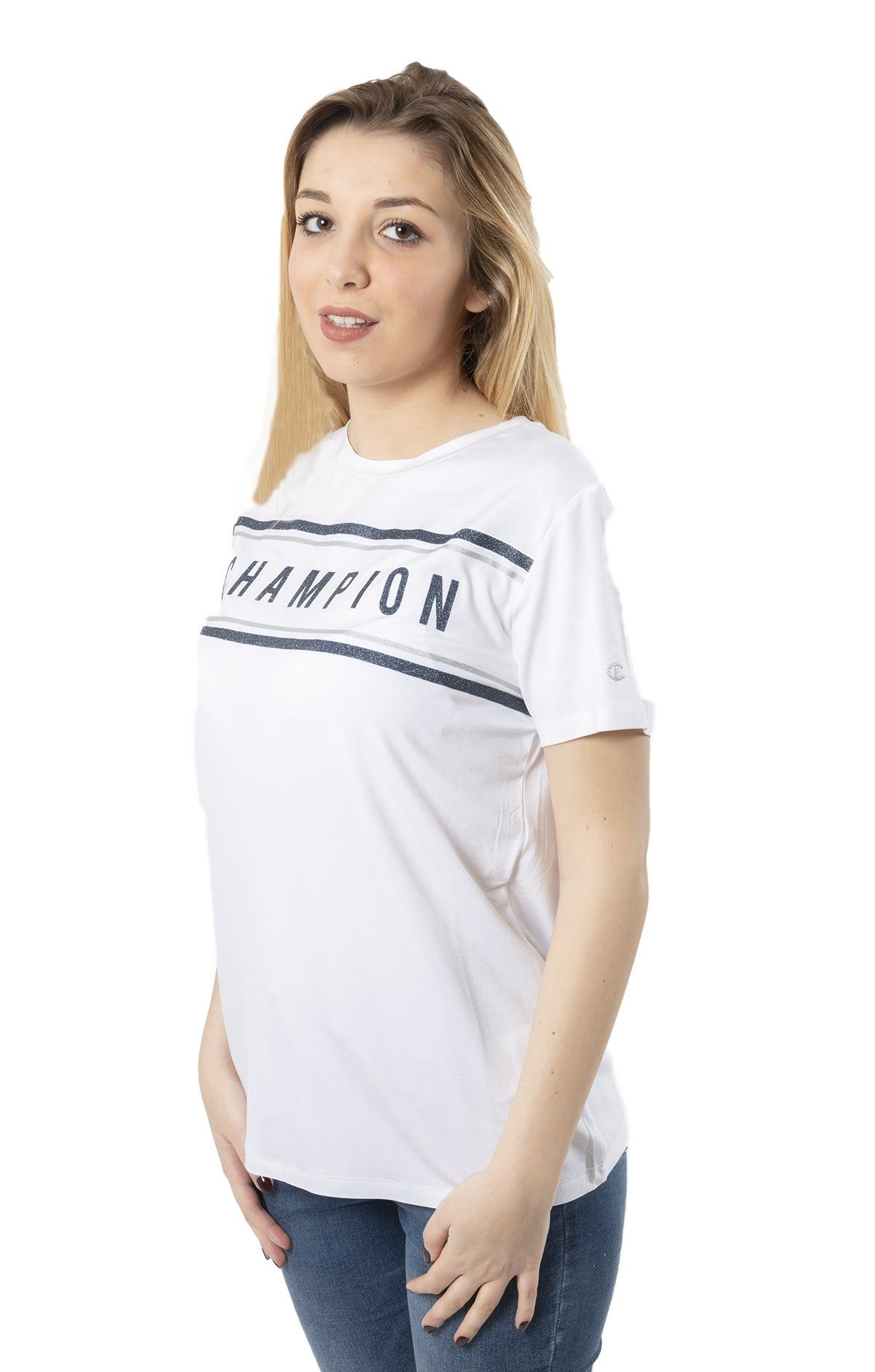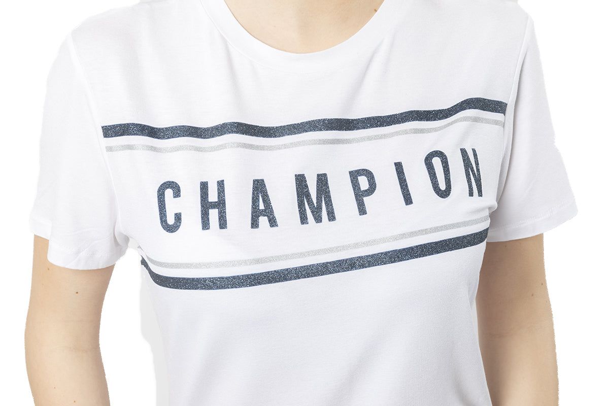 Champion presenta la nuova T-Shirt Donna Travel Vibes per la stagione primavera estate 2019. Estremamente morbida al tatto, la T-Shirt Champion Travel Vibes presenta la grafica Champion stampata sul davanti in rilievo e brillantinata.