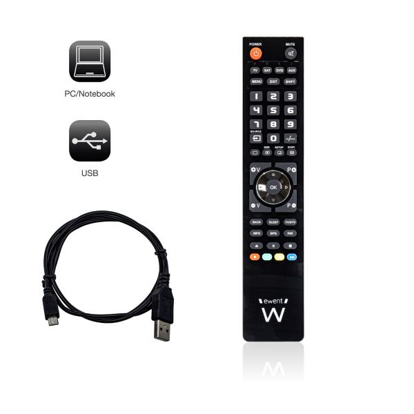 Vuoi sostituire il telecomando del televisore o vuoi utilizzare un telecomando per controllare 4 dispositivi A/V? Il telecomando universale 4 in 1 EW1570 è progettato per il controllo di 4 diversi dispositivi AV con un solo telecomando. Puoi pensare a TV/DTT/SAT/STB/DVD/VCR/Blu-ray/Proiettori/Soundbar/Hard Disk multimediale/dispositivi Hi-Fi. Programmare il telecomando universale EW1570 4:1 è facile tramite qualsiasi PC Windows grazie al cavo micro USB-USB in dotazione. Il telecomando include tutte le funzioni del telecomando originale grazie alla mappa di assegnazione individuale dei tasti. La memoria permanente del telecomando garantisce che i codici vengano sempre salvati anche durante la sostituzione della batteria.