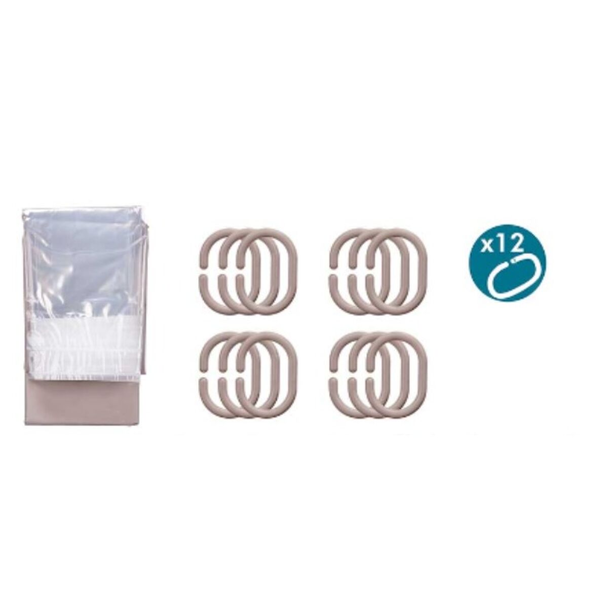 Tenda da Doccia Berilo Beige Trasparente Plastica PEVA 180 x 180 cm 16 x 28,5 x 4 cm (12 Unità)