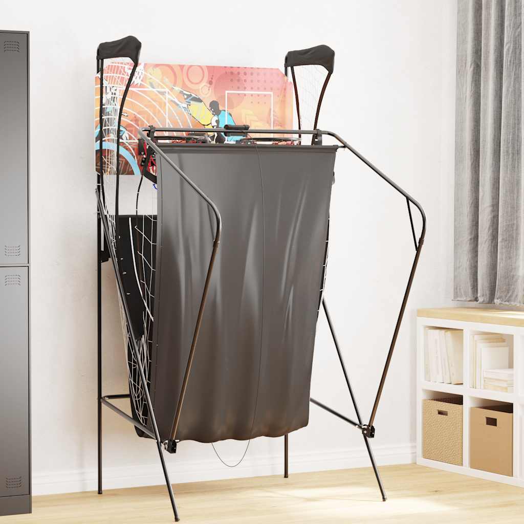 Dieser Basketball-Arcade-Automat ist die ideale Wahl, um Familie und Freunden auf Partys oder anderen Veranstaltungen stundenlangen Spaß zu bieten. Doppelspielermodus: Dieser Automat verfügt über 2 Basketballkörbe, die die Interaktion mehrerer Spieler ermöglichen und ihn ideal für Partys und Familienfeiern machen.Elektronisches Punktesystem: Der Basketballautomat ist mit einem automatischen elektronischen Punktesystem und einer LED-Anzeige ausgestattet. Es zeichnet die Punktestände genau auf und verbessert so das Arcade-Erlebnis.Stabiles und langlebiges Material: Dieser Basketballautomat besteht aus einem langlebigen Eisenrahmen und verstärkten Reifen, was eine lange Nutzungsdauer für Kinder und Erwachsene gewährleistet.Platzsparend und zusammenklappbar: Der Basketball-Arcade-Automat bietet ein zusammenklappbares Design, sodass er bei Nichtgebrauch leicht verstaut werden kann und so Platz in Ihrem Zuhause oder Spielzimmer spart. Warnung:Dieses Produkt enthält Kleinteile, die eine Erstickungsgefahr darstellen können, und sollte nur unter direkter Aufsicht von Erwachsenen verwendet werden.Warnung:Dieses Spielzeug hat scharfe Funktionskanten und Funktionsspitzen. Dieses Produkt ist nur für den Innenbereich bestimmt. GPSR