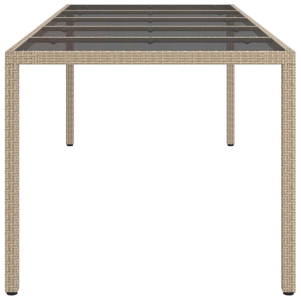 Transformez votre espace extérieur avec cette table de jardin, parfaite pour des reunions au jardin et des repas sur la terrasse. Son design rectangulaire moderne et son look clair s’adaptent bien à n’importe quel décor extérieur, offrant un centre de table à la fois chic et pratique pour des repas en plein air. C’est fait pour être simple et fonctionnel, parfait pour les fans de jardin qui cherchent une option de repas classy. Construction Solide : Fabriquée en poly rattan robuste, acier durable et verre trempé. Ces matériaux de qualité sont faits pour affronter les intempéries, rendant cette table fiable toute l’année. Look Stylé : Avec son grand plateau rectangulaire, elle peut servir facilement des repas pour la famille et les amis. Sa surface élégante ajoute une touche moderne. Caractéristiques Étanches : Résistante à l’eau et aux UV, cette table gère bien la pluie et le soleil, gardant son apparence intacte. Construction Fonctionnelle : Elle a un cadre en acier revêtu de poudre pour plus de durabilité. Ses pieds carrés assurent la stabilité tout en renforçant le style moderne. Entretien Facile : Un simple coup d’éponge fait l’affaire, évitez juste les produits agressifs. Pour plus de protection, utilisez une housse quand elle n’est pas utilisée.
