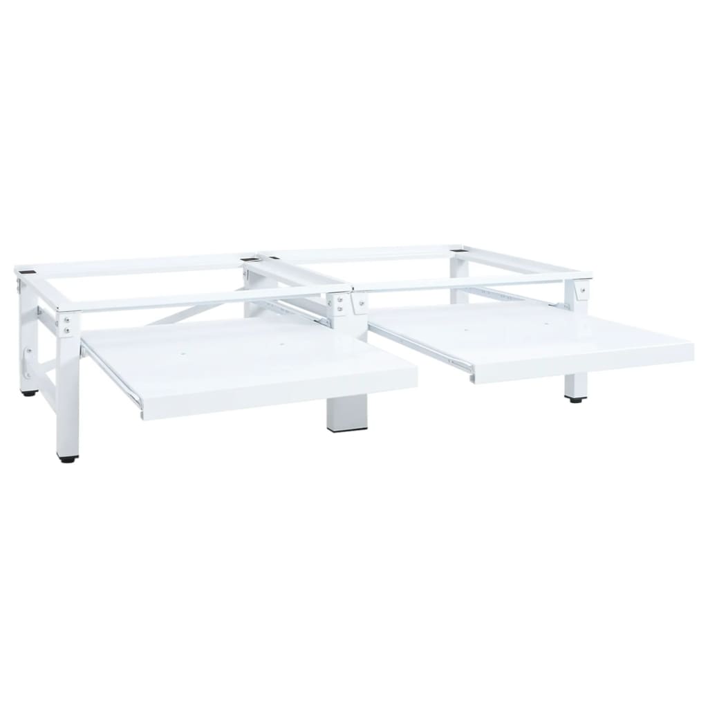 Dieser doppelte Sockel kann verwendet werden, um Wasch- und Trockenmaschinen vom Boden fernzuhalten und sie auf eine geeignete Arbeitshöhe zu heben, damit Sie sich nicht zu sehr bücken müssen, um Wäsche hineinzulegen oder herauszunehmen. Das doppelte Untergestell ist aus starkem Stahl gefertigt, was es sehr stabil macht. Dabei kann jeder Teil eine Waschmaschine oder einen Trockner mit einem Gewicht von bis zu 100 kg tragen. Dank rutschfester Polster stehen Wasch- und Trockenmaschinen stabil. Da die Füße höhenverstellbar sind, kann das Podest zum Ausgleich von Bodenunebenheiten angepasst werden. Es verfügt außerdem über zwei praktische Ausziehablagen, die für zusätzlichen Stauraum sorgen.
