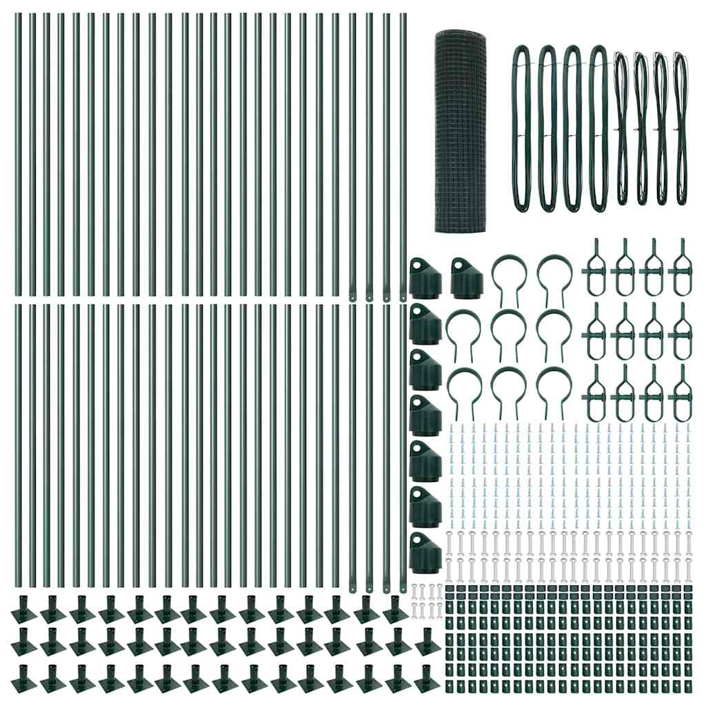 vidaXL Zaun mit Pfosten Grün 0,4 x 100 m Stahl