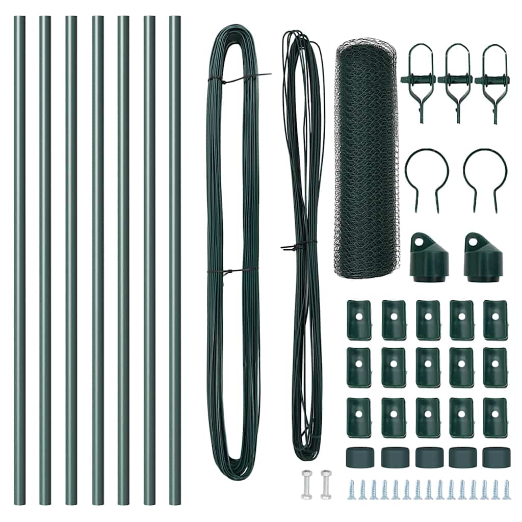 vidaXL Zaun mit Pfosten Grün 0,6 x 10 m PVC-beschichteter Stahl